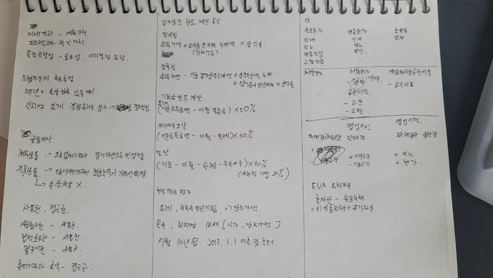 특히 부가가치세, 법인세 신고 기한은 따로 정리해서 반복적으로 외웠다.